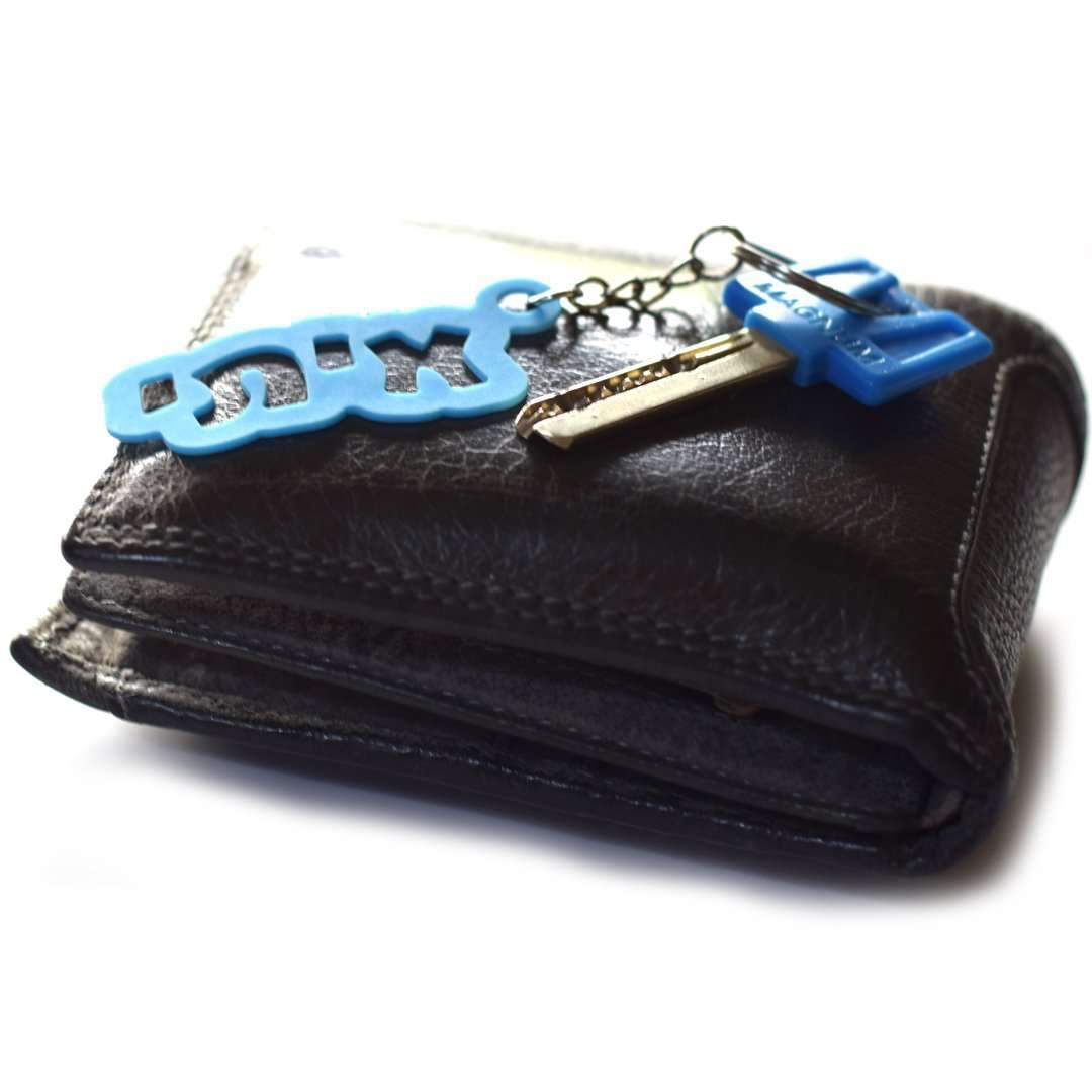 מחזיק המפתחות מתאים לכל סוגי המפתחות ומתחבר באמצעות חישוק טבעתי ממתכת.