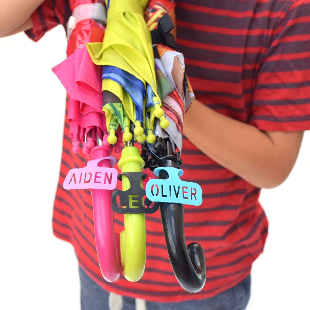 Name-Me Umbrella - תווית שם למטריה. בתוך ים של מטריות זהות קשה לדעת מהי המטריה שלנו: כל המותגים נראים כמעט זהים - ספיידרמן, אנה ואלזה, דרדסים... - ואנחנו ההורים, הגננות והילדים הולכים לאיבוד. לעתים קרובות הילד נכנס לכיתה/לגן עם המטריה ונאלץ להתאמץ ולזכור את המיקום המדויק בו הניח את המטריה שלו.