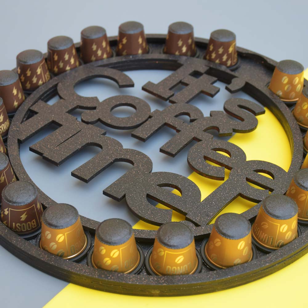 מתקן עץ לקפסולות קפה של נספרסו המסוגל לאחסן עד 21 קפסולות רגילות - לא דגם ורטואו!