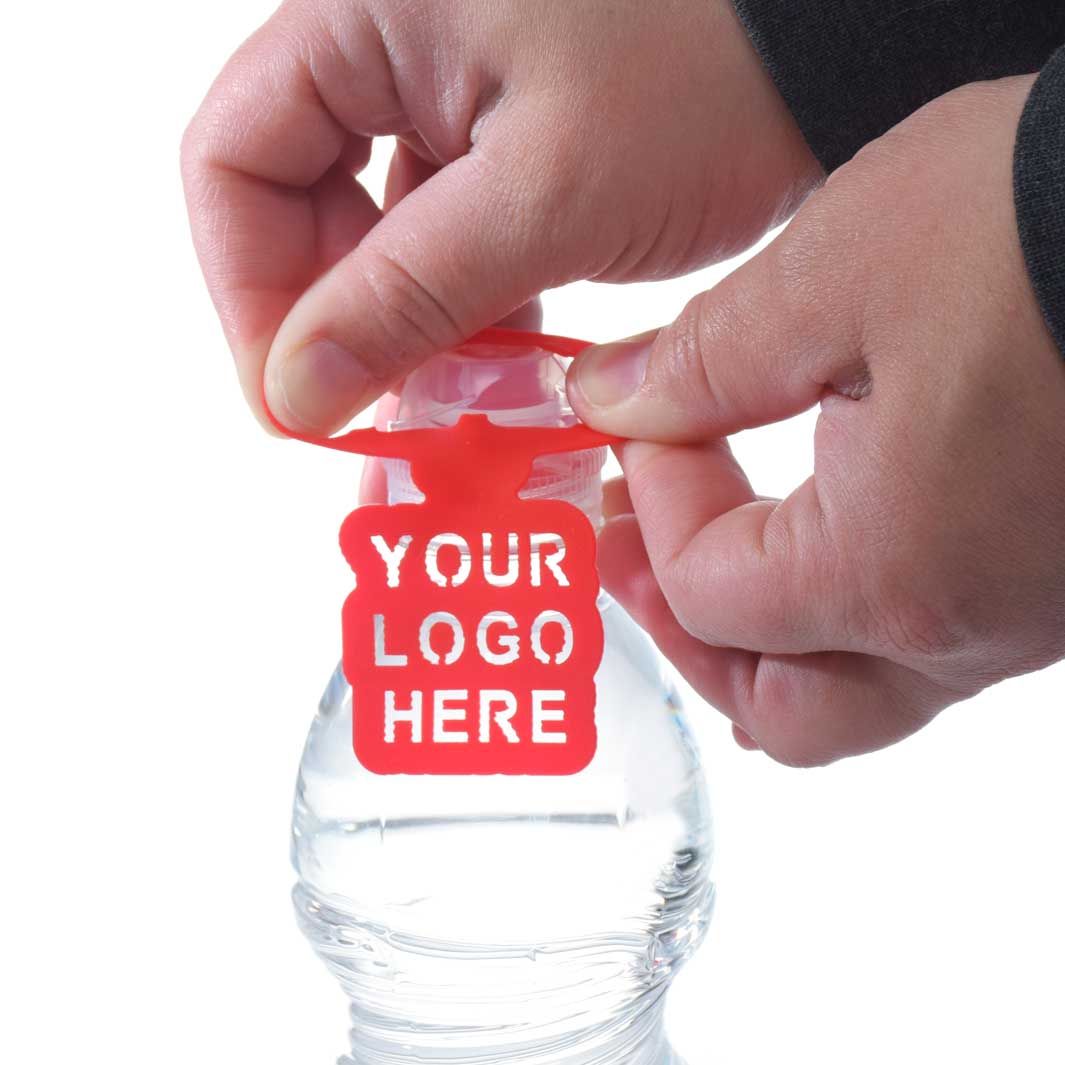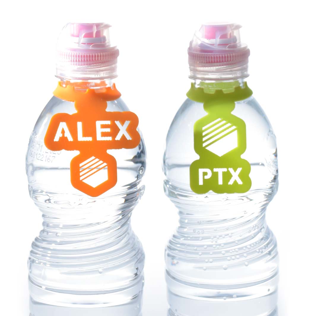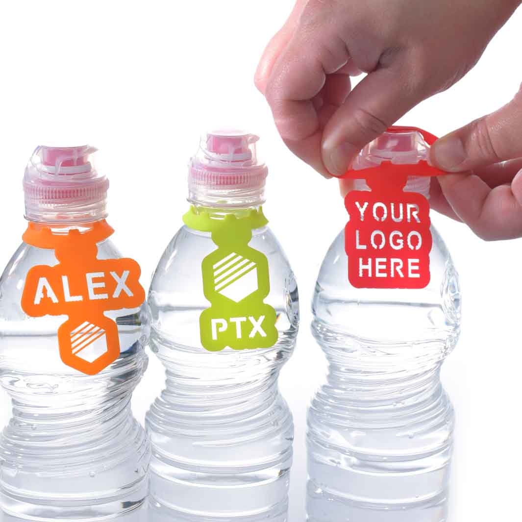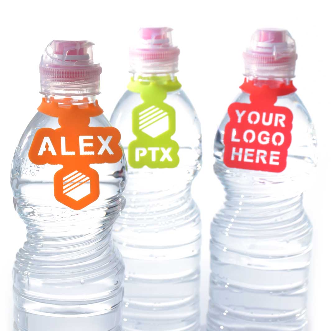 תג מיתוג לבקבוקי מים מינרלים עשוי מסיליקון גמיש ואלסתי.