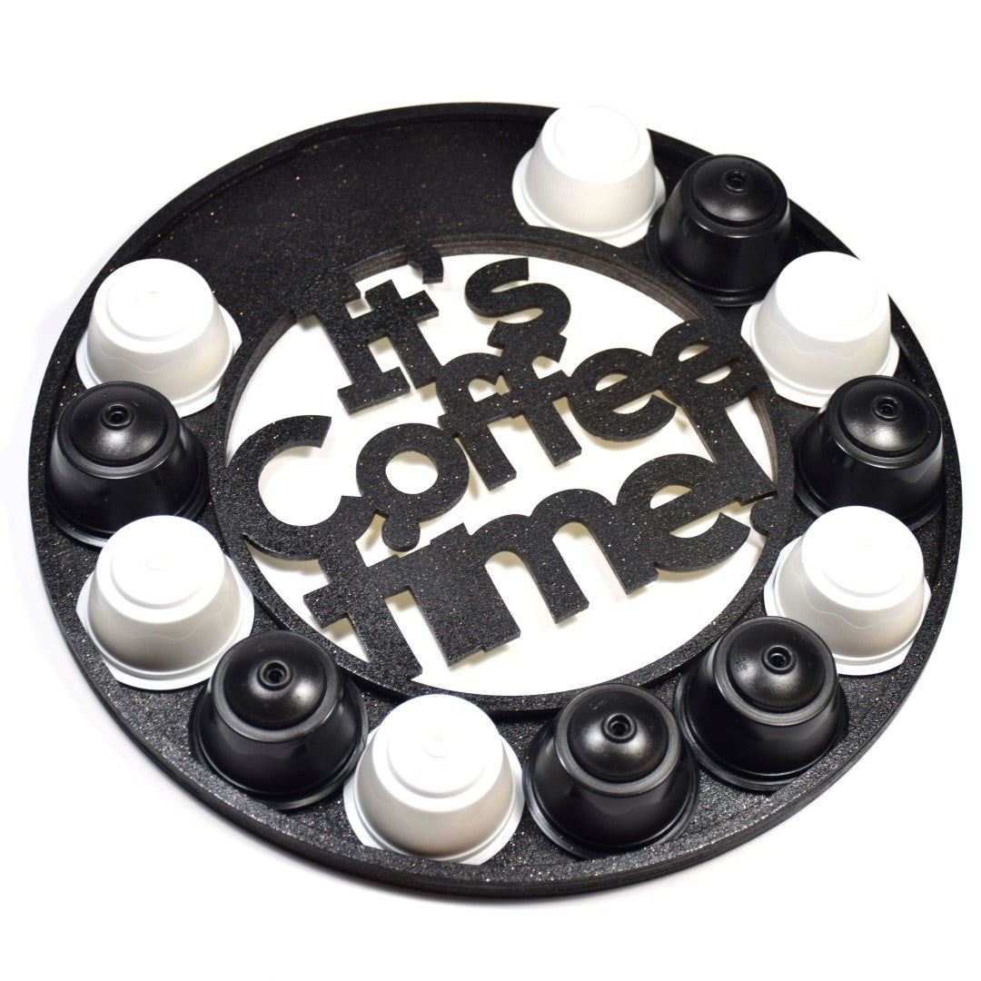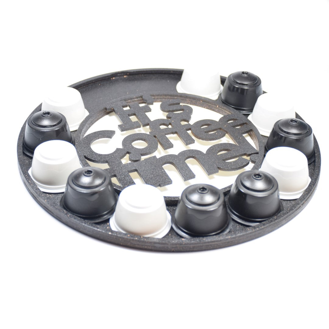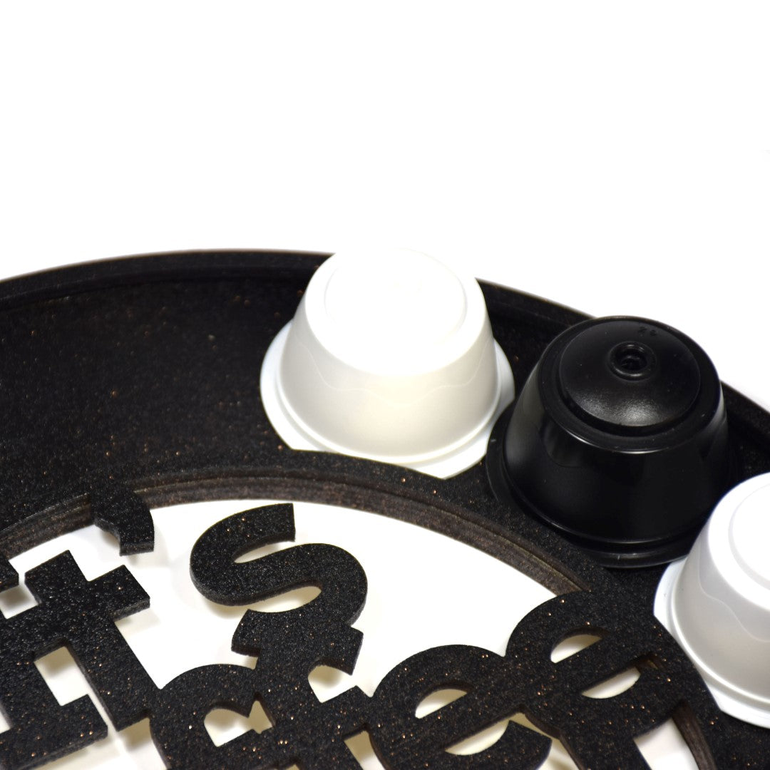 מתקן עץ לקפסולות קפה של דולצ'ה גוסטו המסוגל לאחסן עד 12 קפסולות.