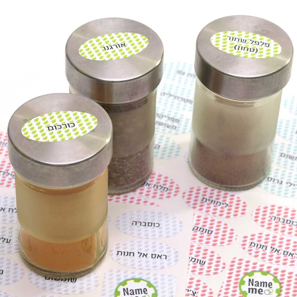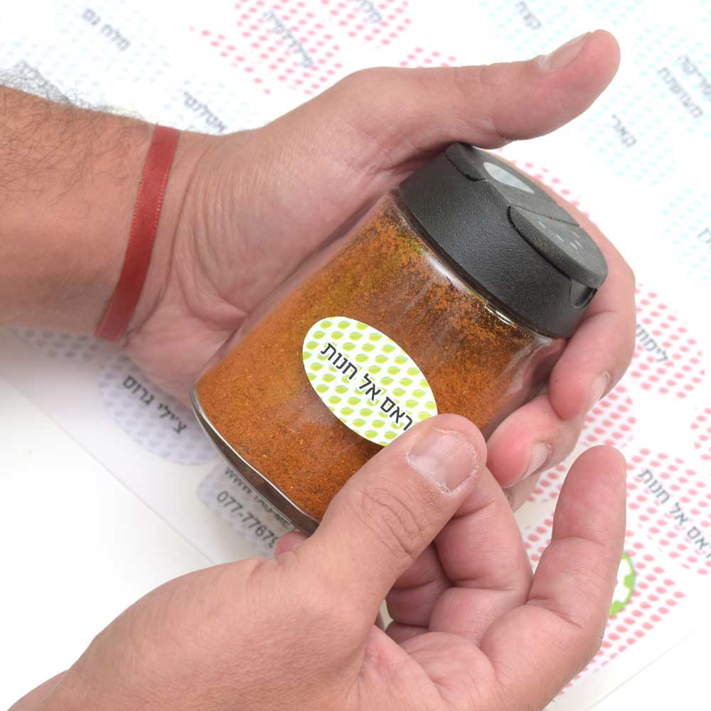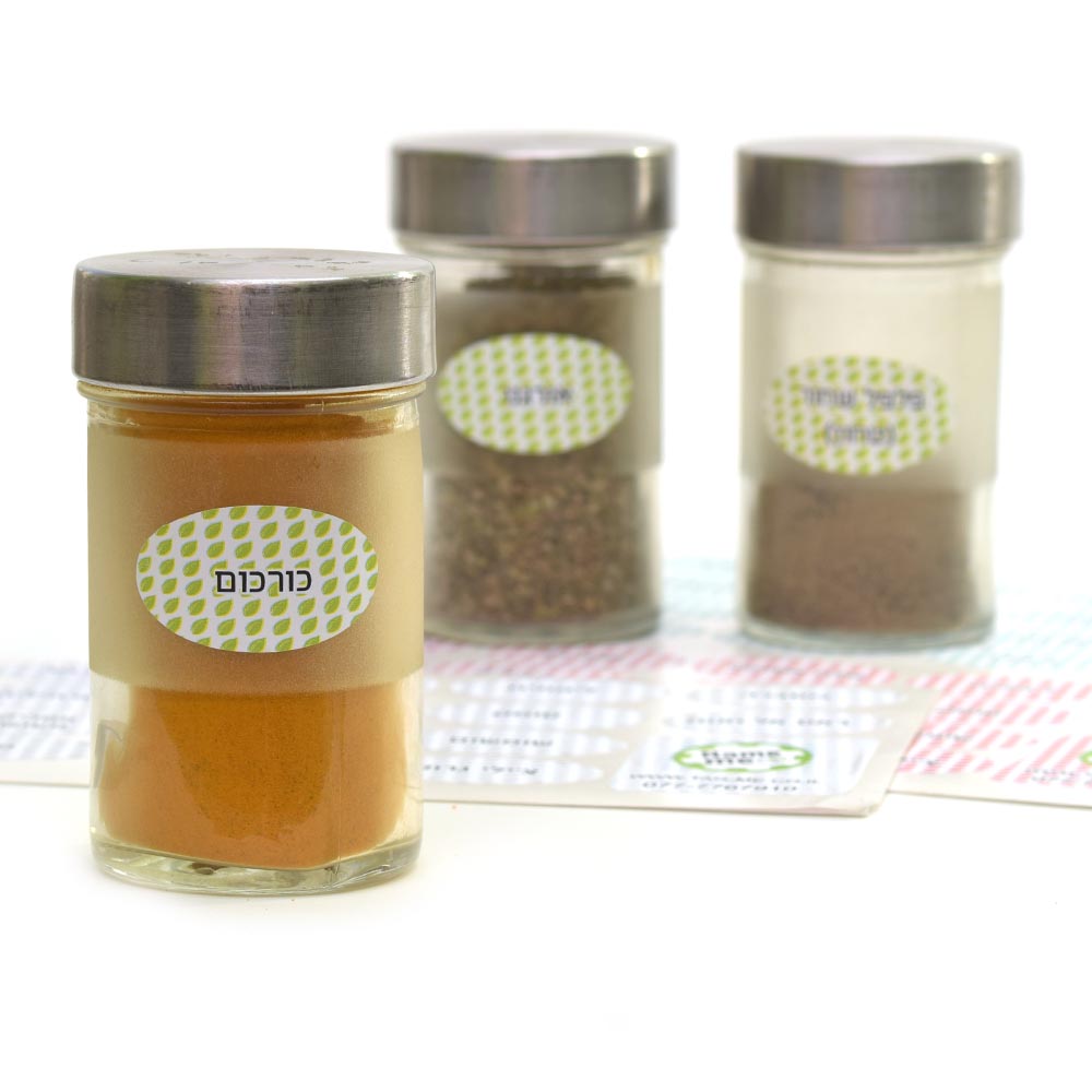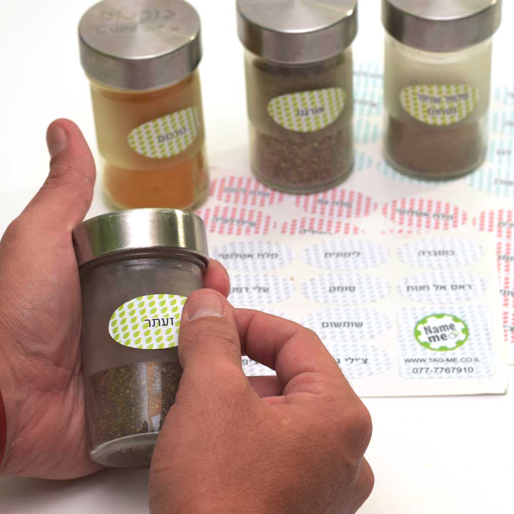 סל של מדבקות פוליאסטר עמידות וחזקות לסימון מכלים לש תבלינים.