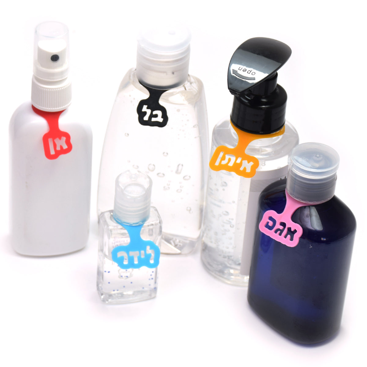 תווית שם לסימון בקבוקונים של אלכוהול ג'ל. פתרון מעולה לילדים במוסדות חינוך