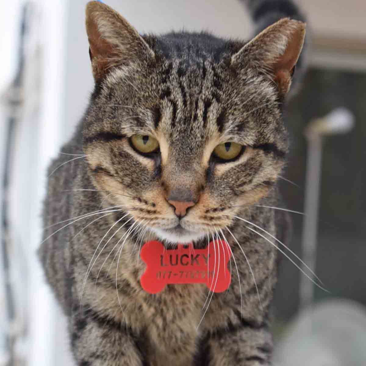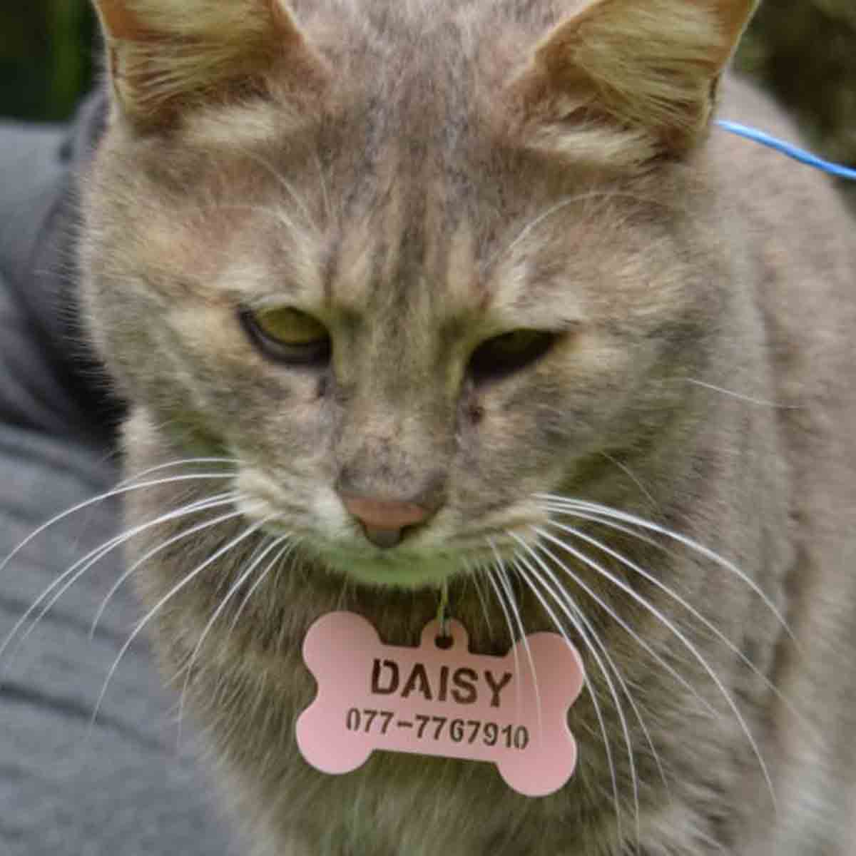 תג שם לחתולים עם פרטי קשר.