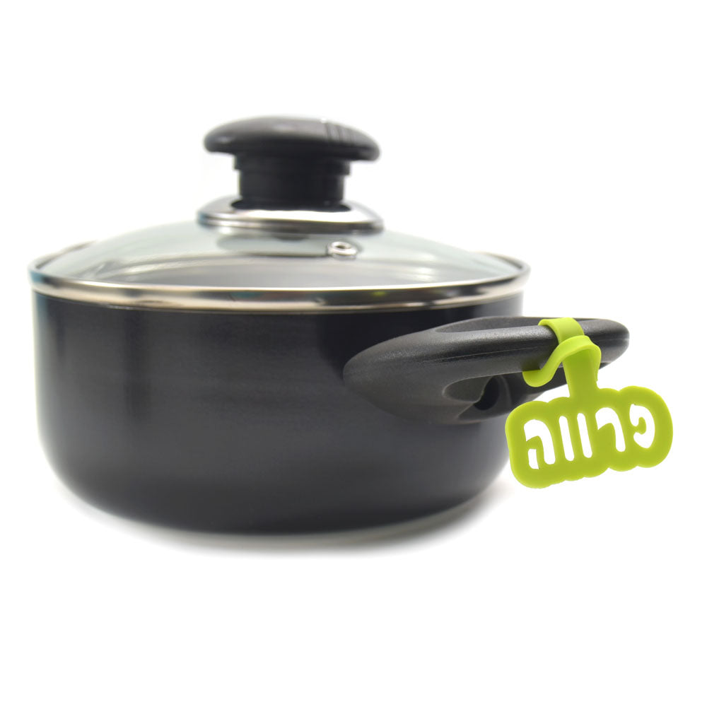התגים מתלבשים על הידיעות של הסיר וננעלים ב"ליפוף" קל.