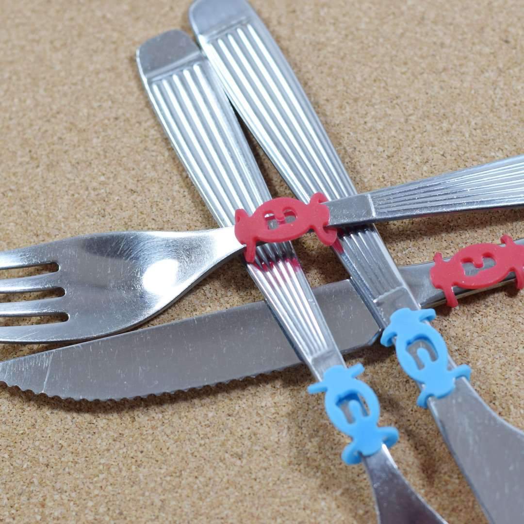 סט של 6 יחידות לסימון כלי אוכל. (מומלץ לסימון הכפיות במיוחד) התווית מקלה על שמירה והפרדה בין הכלים הבשריים והחלביים לכל מי ששומר על כשרות. הסימון גמיש ועמיד בפני טמפרטורות קיצוניות -  מתאים למקפיא, מיקרוגל, תנור. התוויות קלות לניקוי, גם ניתן להכניסם למדיח כלים ואף למכונת כביסה. כל כיתוב מגיע בצבע הנבחר. מתאים לרוב כלי האוכל הסטנדרטיים, לא לכלים בעלי ידית רחבה במיוחד.