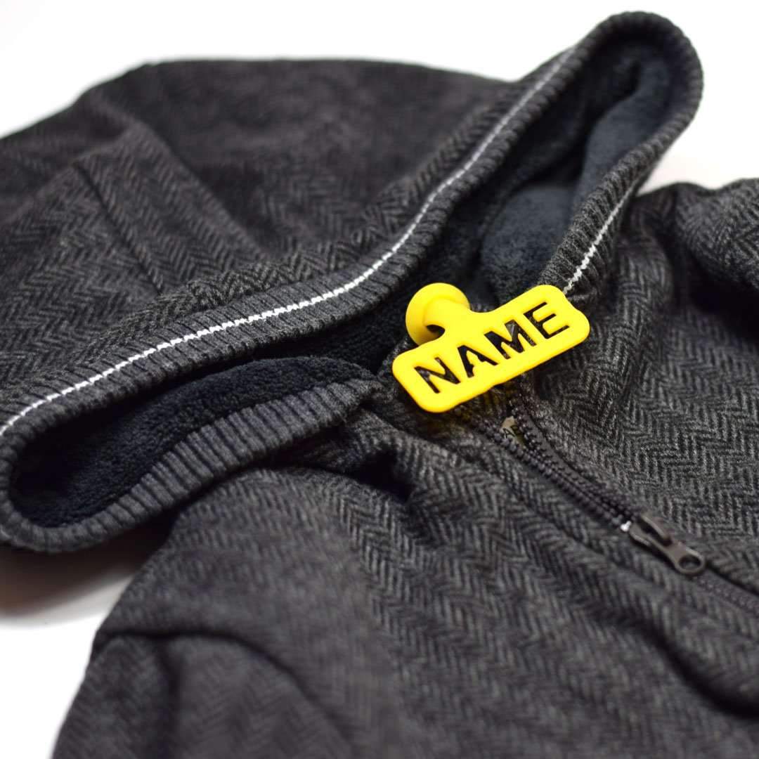 תווית שם מעוצבת אישית למעיל / סווטשירט / קפוצ'ון. התגית שם רב פעמית, גמישה ונוחה להעברה. בולטת על גבי המוצר ומונעת מאיתנו רישום לא מחמיא בטוש... התווית נכרכת סביב עצמה ולכן מתאימה לכל רוכסן ורצועת בד (לתיק/ קלמר/ מעיל/ מטריה!!)